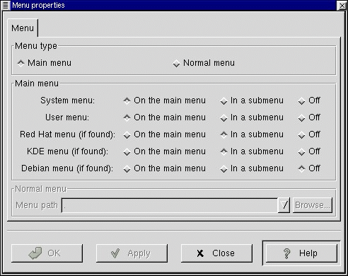 IMPORTANT: Keep in mind that you can not change the System menus unless you are logged in as root. An ordinary user can onlu add to, delete from, and edit the User Menus.