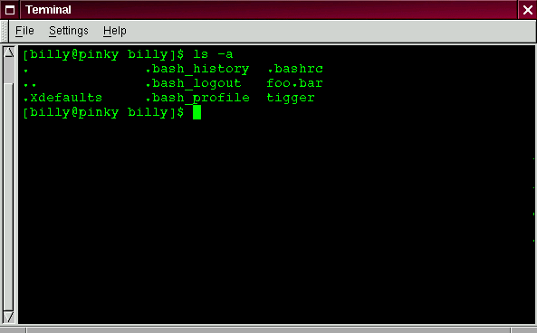 Quite a difference. When you added the -a option, you were specifying that you wanted to list all the files in the directory (see Figure 3-6).
